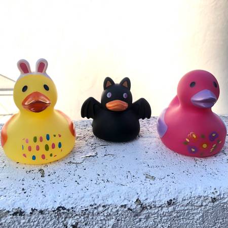 - Pick up Silver Lake - Yellow and Pink duck are from Michael’s👉🏻Creatology and are Easter themed Ducks. Both are in excellent condition! - Black spooky rubber Bat Duck loves to trick or treating 👻🎃...