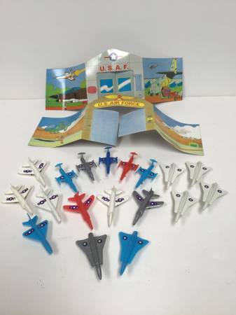 Vintage Plastic U.S.A.F Toy Airplanes w/ Cardboard Hanger Scenery