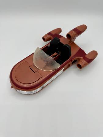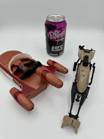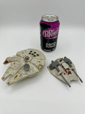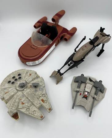 four vintage star wars vehicle toys. can for scale. as is, cash only, thanks!