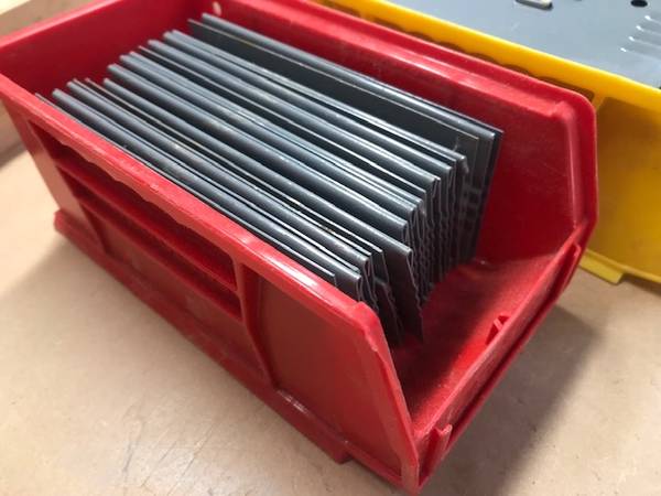 Vintage mid-century industrial steel drawer dividers (only). Intended for compatible multi-drawer industrial small parts storage and organization cabinets.