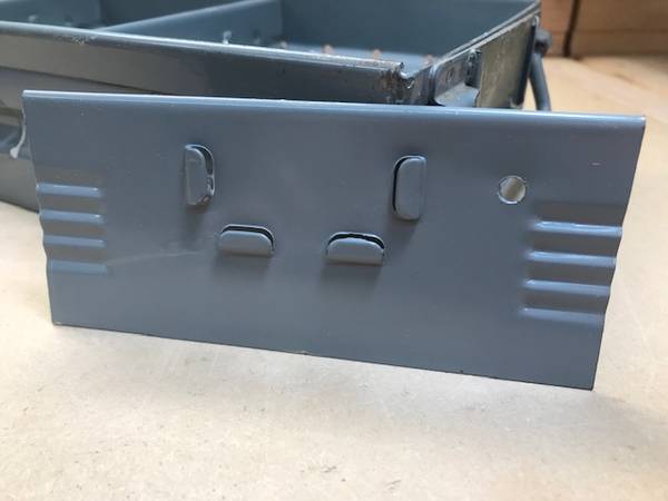 Typical mid-century pressed steel "slip-in" dividers with label holding clips (see images....drawer not for sale). Most dividers are in near new condition with very little (to none) paint loss on most. These dividers are great for small tools and parts management in a suitable multi-drawer storage unit.
