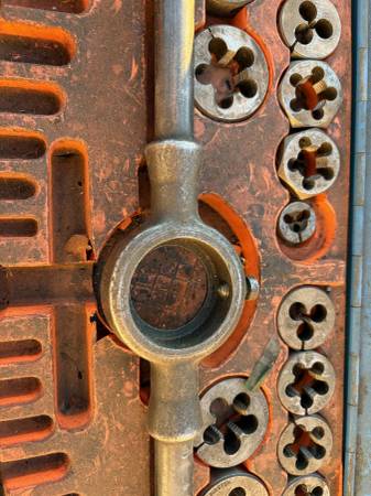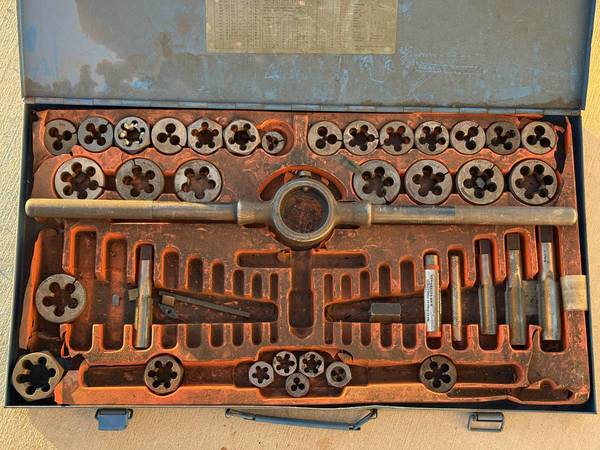 🛠 45-Piece Metric Tap & Die Set – TAP (Model 74047) Complete set for cutting and repairing metric threads. Includes taps, dies, wrenches, and sturdy metal case. Made by Trans-American Products...