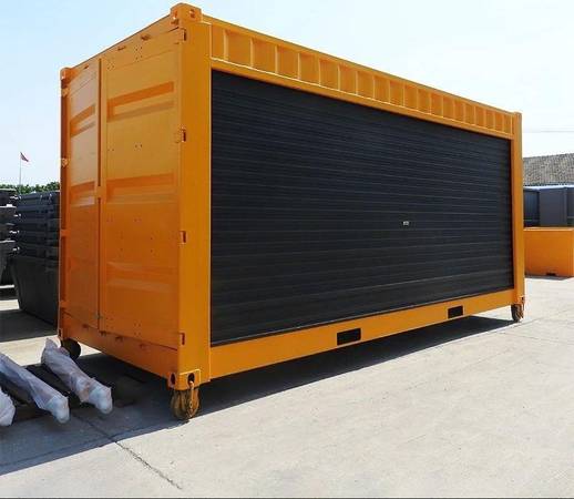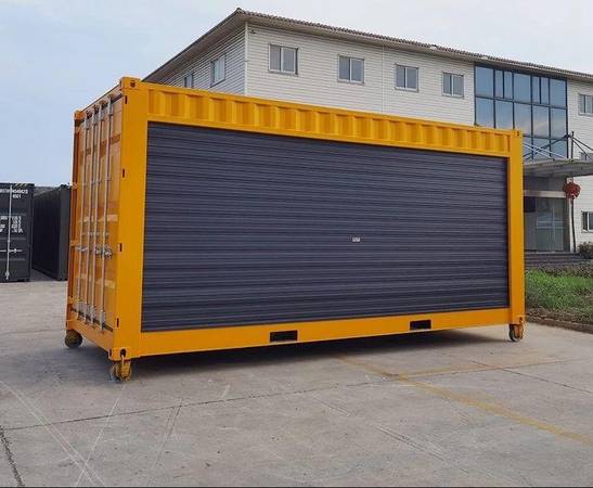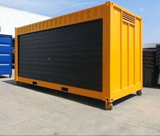 The 20ft unit is available for delivery. It features rollup doors opening access, steel construction, lockable doors, forklift pockets for easy movement when delivered