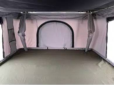 Sleeps two medium sized people comfortably. I’m 6’1 and fit in it fine.