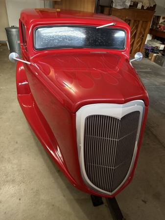 Beautiful, "vintage," 1932 Ford Trailer. Fiberglass body (light enough to tow with a sedan). 7ft long, 4ft wide. 14" wheels. Adjustable tongue with 1 7/8 ball hitch. Wired and ready for use!