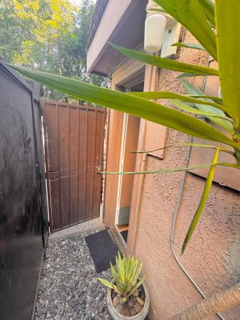 All conveniences. One shared wall w/main house. Newly remodeled/cozy/clean, tiled/hardwood floors. Lower Unit. Fully furnished BEDROOM w/queen size bed, 2 mirrored sliding spacious closets. Fully equipped KITCHEN w/ walnut closets, microwave, coffee maker, dishes, pans and everything you may need. Comfortable & spacious BATHROOM shower. Small outdoor patio. Wireless DSL Internet