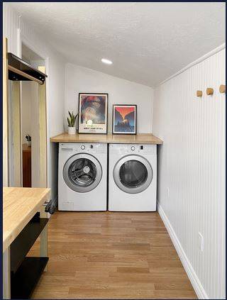 Downstairs: 1 bed, 1 bath, office nook, laundry