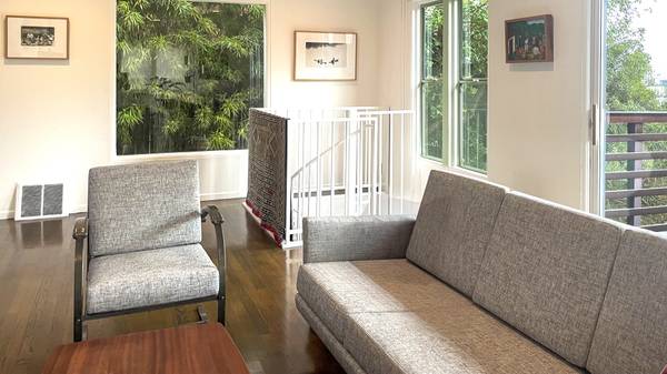 Whether you are coming to LA for work, a vacation, or a base for which to find a permanent place, my art-filled house has everything you'd need: a great stereo system, parking for two cars, and exceptional location in the hills with some of the most interesting shops, cafes, and restaurants in the LA area a five minute walk away.
