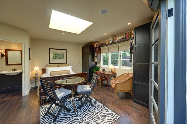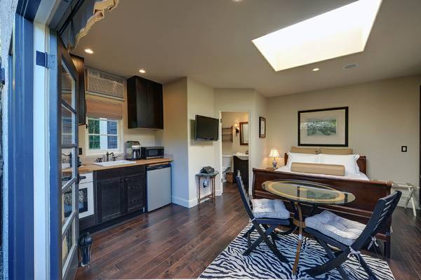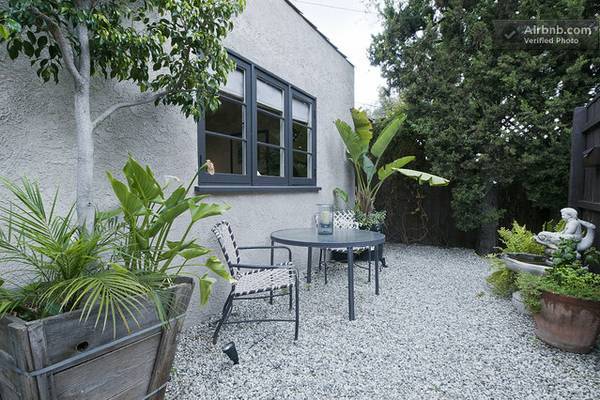 Cute West Hollywood guest cottage - studio with kitchen and bathroom. Queen sized bed, 2 large built-in closets, desk, sitting chair, small dining table with chairs, wireless internet service, AT&T U-Verse cable TV, Smart TV with all streaming services, maid service every other week (includes cleaning and changing of bed linens and bath towels), private sitting area out front, and in a great location - half a block from the high end portion of Melrose Avenue and an easy walk or short drive to other restaurants, bars, shopping, etc. Parking placard included. No washer/dryer but there is a laundry cleaner / dry cleaner 3 blocks up the street. $800 per week or $2800 per month. Every-other week housekeeping fee $40. Approx. 425 sq. ft. Refundable security deposit $500.