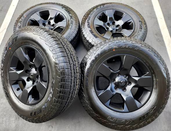 18” Dodge Ram 1500 New Satin Black Wheels and Tires - new satin black finish - Falken AT tires 265/70/18 100% tread on them - 6 lug / fits 2018 up Ram 1500 - 657/342//70-one-two