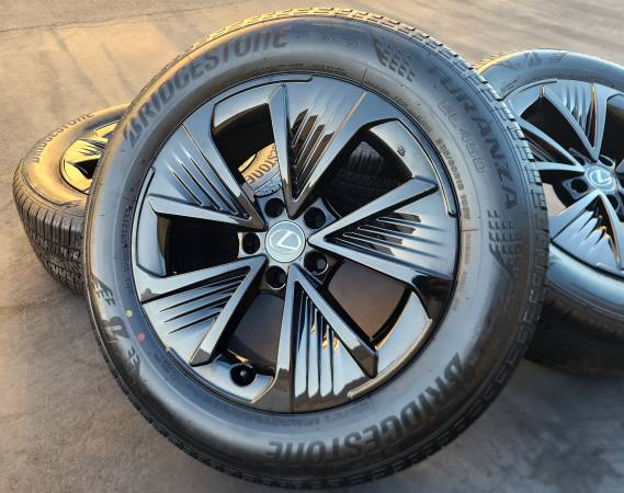18” LEXUS RZ300e RZ450e RZ350e New Gloss Black OEM Wheels and Tires - new gloss black finish - Bridgestone tires 235/60/18 50 miles on them - 657""342"" seven,zero,one,two