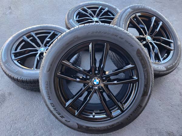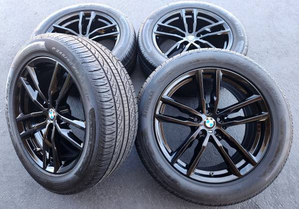 19” Bmw X3 X4 M Sport Gloss Black Wheels And Tires - Pirelli tires 245/50/19 90% tread on them - complete with tpms - fits 2018 up X3 - 657//342 //7-0 one,two