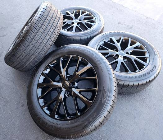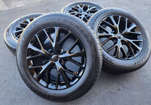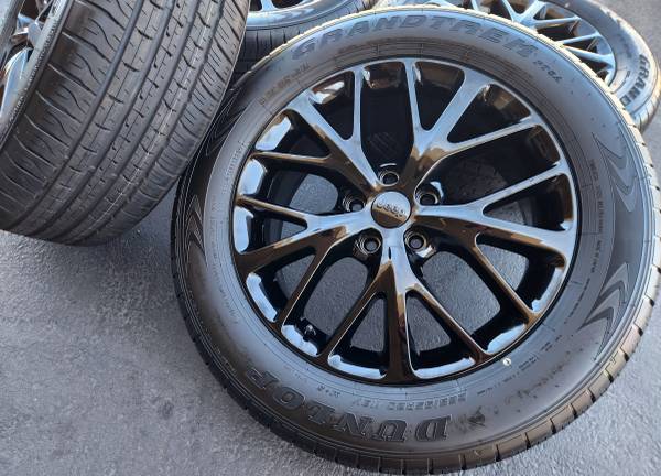 20" Jeep Grand Cherokee New Gloss Black OEM Wheels And Tires - New gloss black finish - Dunlop tires 265/55/20 100% tread on them - Factory OEM set - 657//342//seven-zero,one two