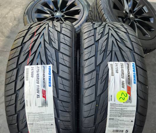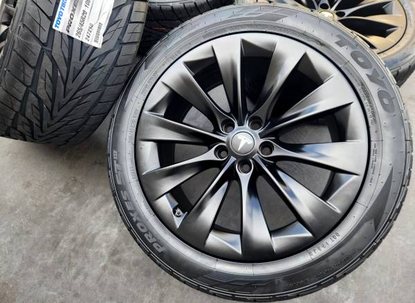 20” Tesla Model X New satin black wheels and tires - new satin black finish - Toyo tires 100% tread on them 265/45/20 & 275/45/20 - Factory OEM set - 657[342]70-one-two
