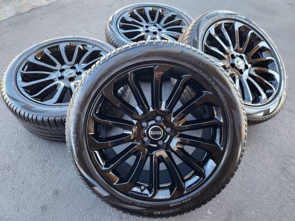 22” Range Rover Autobiography Gloss Black OEM Wheels and Tires - Factory OEM set - new gloss black finish - Pirelli tires 285/45/22 20 miles on them - 657//342//70// one-two
