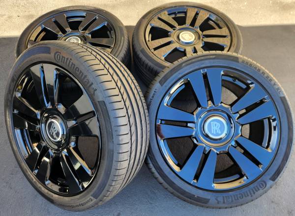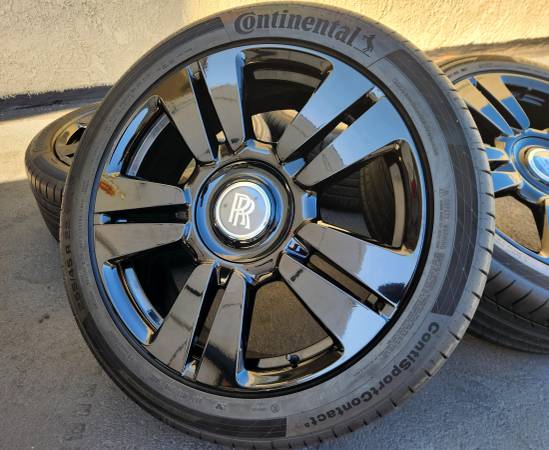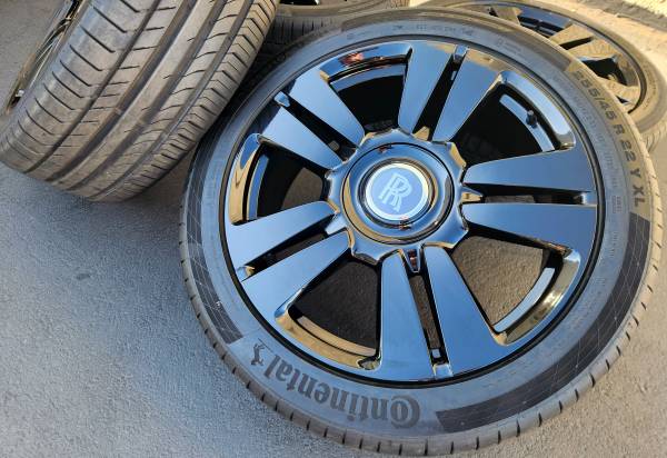 22" ROLLS ROYCE CULLINAN New Gloss Black OEM Wheels And Tires - Factory OEM set - Continental tires 200 miles on them - New gloss black finish - 657//342//70//one-two