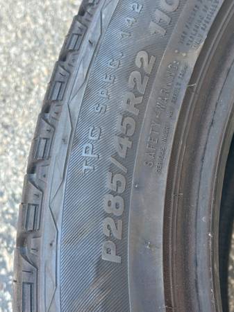 Hello have for sale 1 tire Bridgestone Dueler H/L Alenza size P285/45/R22” in New condition whit 90% of the tread left on them please serious buyers only and NO low ballers, Thanks for looking.!!’...