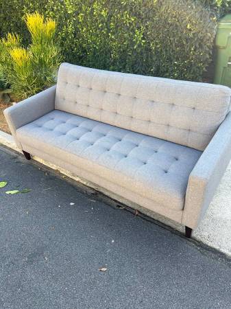 Scandinavian Designs blue couch in decent condition on curb now, first come first serve