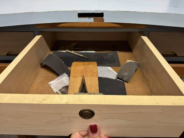 Sturdy well made vintage desk with original tools still in the drawers.