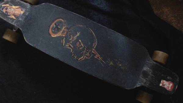 Santa Cruz Screaming Hand on Mushrooms longboard 36"X9" Gullwing trucks These wheels asking fifty or O.B.O
