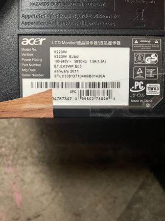 Both are functional, VGA and DVI inputs, powered via common C13 cable (not included). One monitor has some bad scratches on the screen, but it still works.