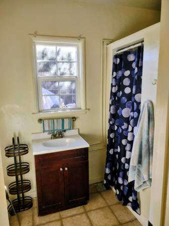 Backyard bachelor apartment for rent. Comfortable one-bedroom apartment with a kitchen and bathroom for one person only, no pets.