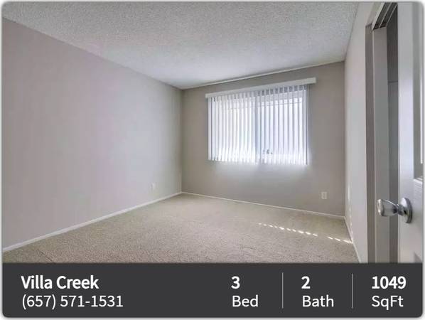 Your search to find available apartments in Cypress, CA has led you to the right place. Just by clicking on a few buttons, you will have a list of our current availabilities at your fingertips. View our photo gallery and catch a glimpse of Villa Creek Apartment Homes living at its finest.
