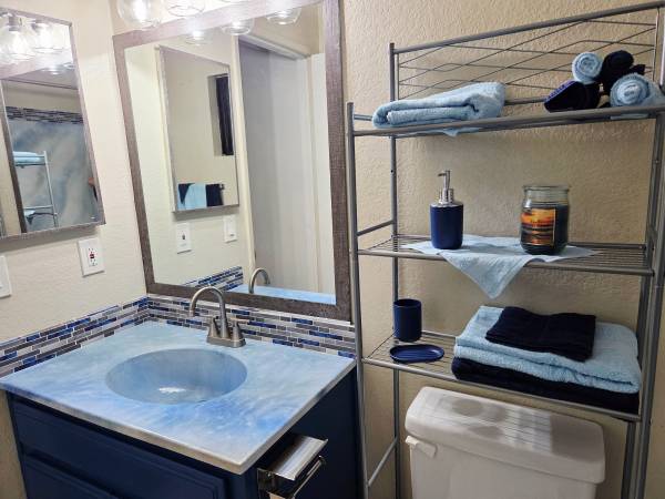 *** TRENDY EPOXY REMODELED bathroom and Kitchen, NICE sinks/faucets, whole place remodeled a couple of years ago.