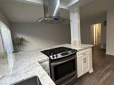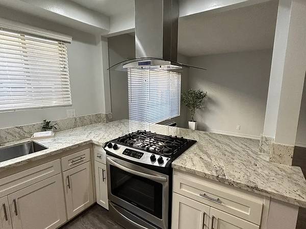 Freshly painted one bedroom apartment (upper) with new carpet in living room and tile flooring in kitchen, bath and bedroom. This is a 24 unit bldg. and rent includes one off street parking space. Close to the new LB airport commercial, retail and restaurant complexes. Large center court has community bar-b-q. Apartment faces into courtyard away from street.