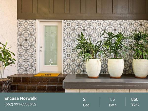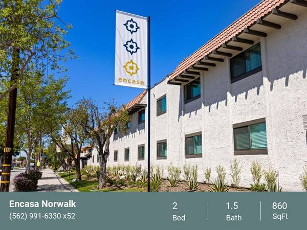 Encasa Norwalk Apartments in Norwalk, CA 90650 features apartment homes with a private patio or balcony, updated kitchens, baths and wood flooring throughout in select homes. Kitchens include stainless steel appliances, granite countertops and modern cabinetry with plenty of storage space. Smart home technology available in every home! We are a smoke free, pet friendly gated community with an outdoor year round swimming pool, safe and secure package lockers, two card operated laundry facilities, and 24 hour fitness center. Located one block from Cerritos College, less than three miles from I 5, I 605, I 91 and I 105 and only 15 miles from Long Beach and 17 miles from Los Angeles. Easy access to major shopping centers, business parks, restaurants and entertainment.