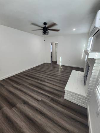 Newly remodeled house with a detached one-car garage, fireplace, and new appliances. There is a laundry room onsite.