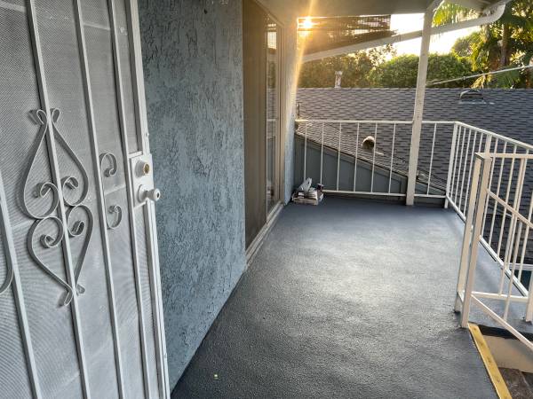 Fully renovated 900 square-foot large two bed two bath apartment upstairs with one car, garage, balcony, patio oven Range refrigerator ceiling fans, air conditioning.