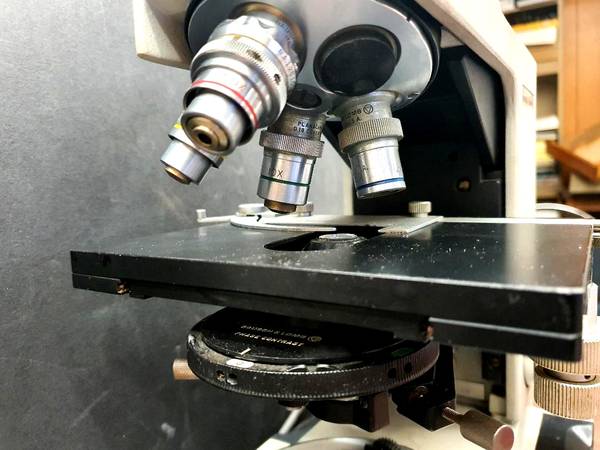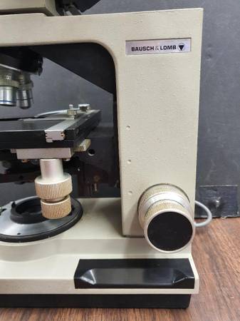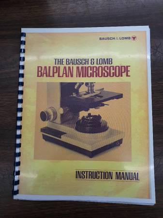 Bausch & Lomb Balplan Binocular Microscope 4 Lenses 100X 40X 10X 4X Model 31-32-16 Lights work fine. Oculars light up. Instruction manual included. Nice codition