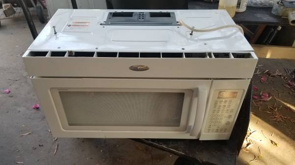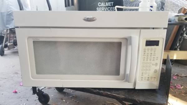 WHIRLPOOL OVER RANGE MICROWAVE, WHITE,2.0CF, USED. Mfg in 2012, taken our of service 2024. This mounts under a 30" Cabinet with 2 supplied bolts and exhausts through the top with air ducting to the roof. . Needs back wall bracket for full install. MFG Part #WMH3205XVQ-2 and Bracket is WMH32519HV5 Mounting Bracket - Genuine OEM