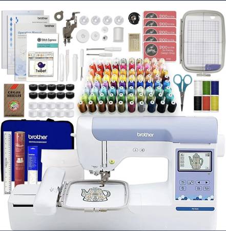 Selling my Brother PE900 5" x 7" Embroidery Machine — purchased new on April 1, 2025, and used only twice. Excellent condition and works perfectly. Comes with a complete deluxe accessory kit and everything you need to start embroidering immediately.