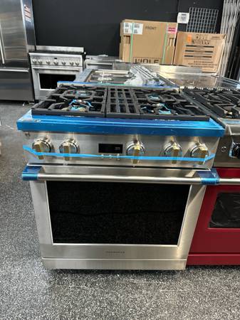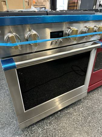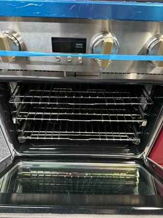 Ge monogram freestanding range Stainless steel - statement series 30” wide with 4 burners New open box floor model Working great no issues All gas / convection oven & many features Store...