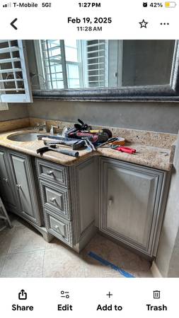 -Porcelain vanity sink, marble countertop. 36" wide and 20" deep. $200