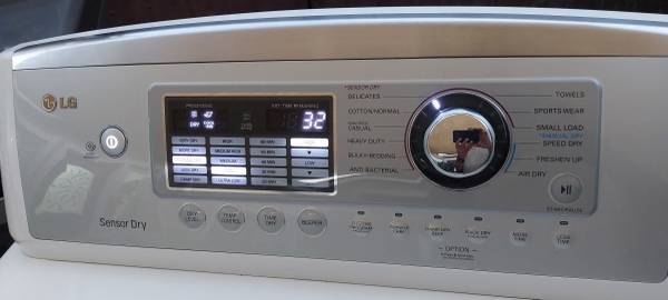 Gas dryer big capacity, with wrinkle prevent, timed dry, steam refresh, is 27"wide, dryer looks and works great. Tel. .