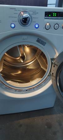 Gas dryer big capacity, 27"wide, with wrinkle prevent, dryer looks and works great. Tel. .