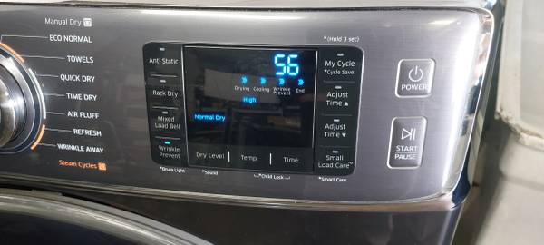 Gas dryer big 9.2 cu. ft. capacity, with wrinkle prevent, steam refresh, timed dry, is 30"wide, dryer looks and works great. Tel. .