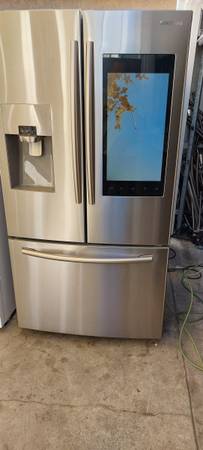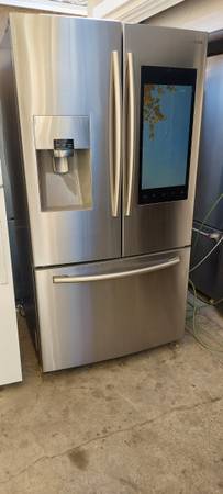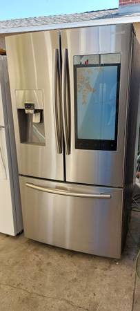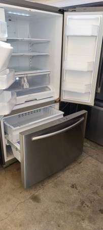 Refrigerator is 33"deep, 36"wide, 69" high, bottom freezer, fridge is clean, looks and works great. Tel. .
