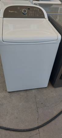 Washer big capacity, high efficiency detergent, prewash, extra rinse, is 27"wide, washer looks and works great. Tel. .