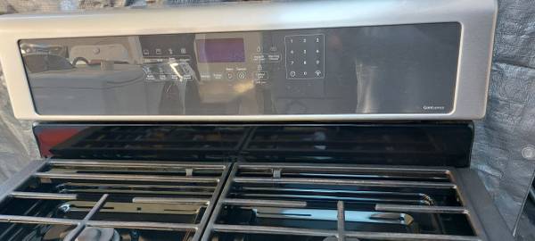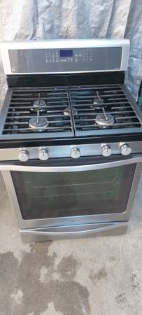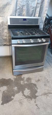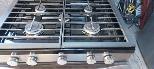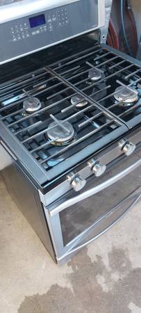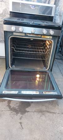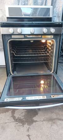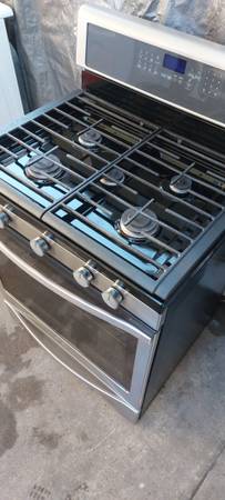 Stove with big convection oven, all 5 burners work as well as the oven and broil, is 30"wide, fully functional. Tel. .
