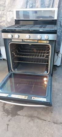 Stove big capacity, all five burners work as well as the convection oven and broil, is 30" wide, fully functional. Tel. .