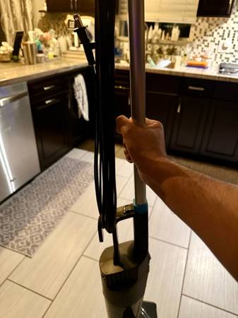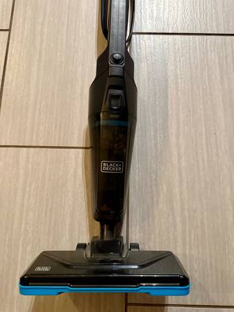 Small compact vacuum. Works completely fine. No issues, has filter and has a cord.