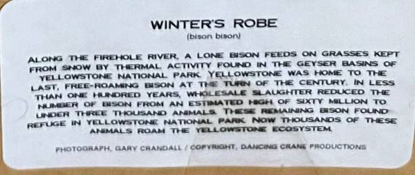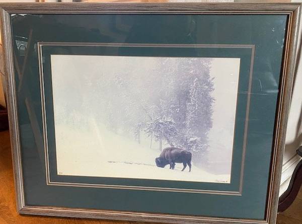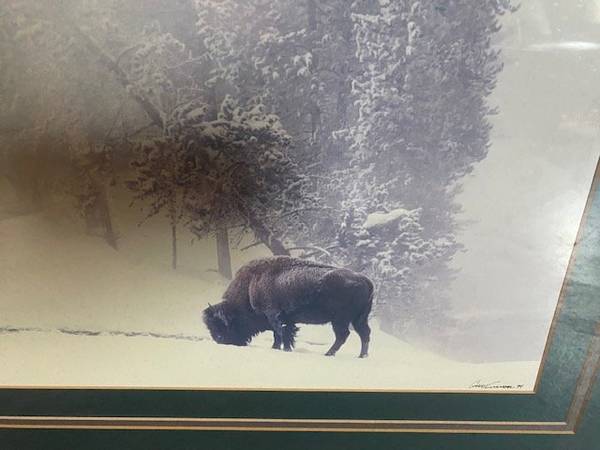 Beautiful hard to find framed "Winter's Robe" Bison in Yellowstone Winter by Gary Crandall; photograph 19"x14"; frame 30" x 24" - excellent condition!