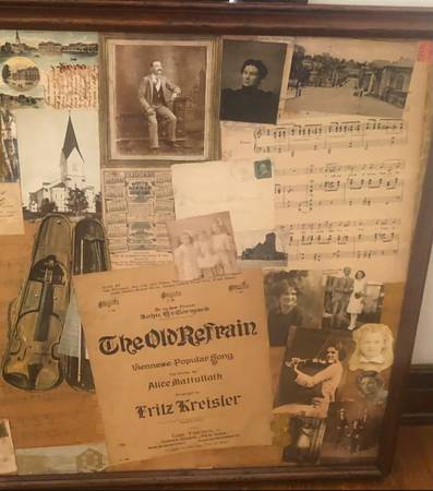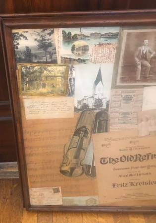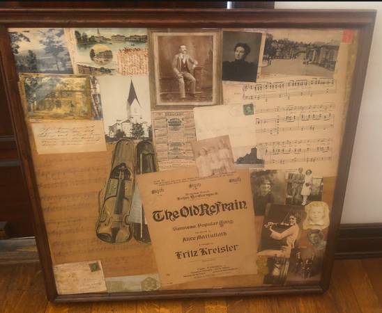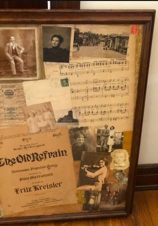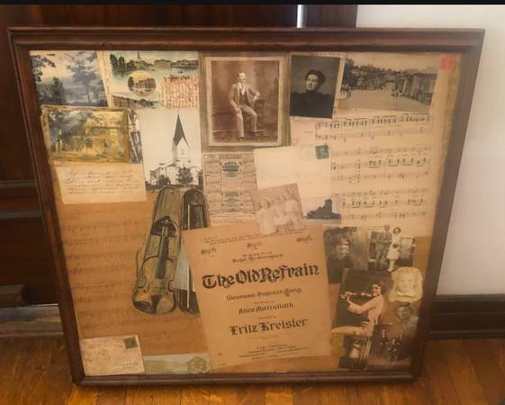 Framed Collage of Music and Vintage Pictures. Frame and back redone, ready to hang. Very nice condition. 26x26” Price: $75 CASH ONLY Please click on the 'more ads by this user' link to see other...