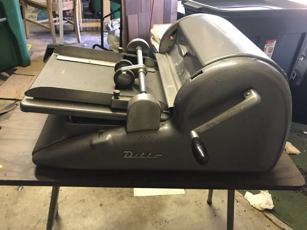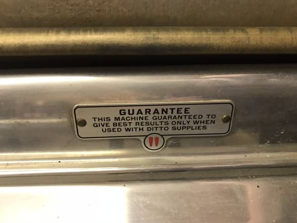 This is an awesome vintage Ditto model 9D15 spirit duplicator processor Machine circa the late 1940s/early 1950s. The first of its kind of printer. These were primarily used for churches and schools. Back when they were first presented, these cost anywhere from $200-$400. Always worked perfectly, never had a problem. also have the rolling stand for it as well sold separately. $495