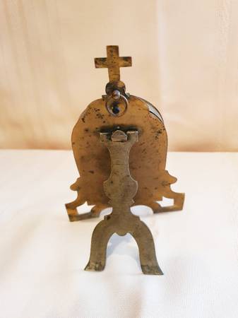 The total height of the frame is 6 3/4" high x 4 1/4" wide at the base, the painting itself is approx. 4" x 2 1/2"