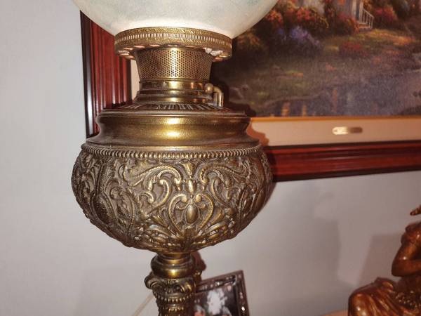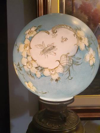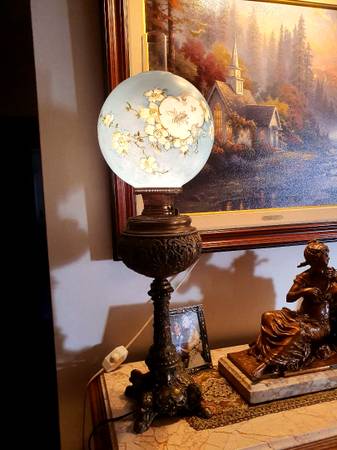 Antique 31" B&H GWTW Globe Oil Lamp electrified-Great Condition.